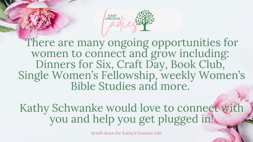 Contact Kathy at the email address provided below. Weather you’re looking to lead a group, interested in starting up an event, or simply want to find a way to connect with women and nurture your faith, we have a place for you and need you as an integral part of the body of Christ.